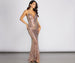 Bring that million dollar shine as you make a luxe entrance in our Joan sequin taupe dress! She features a sleeveless bodice, a plunging wired V neckline, corded straps that cross at the back and a partially open back that leads to a lower back zipper closure. Her waist features a narrow waist band accent that leads to curve hugging floor length sheath silhouette. She is composed of a mesh fabric adorned with iridescent sequins that reflect flicks of blue and purple shine. Dress is lined with a form hugging mini skirt length smooth knit fabric that offers a slight stretch.