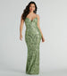 The Julissa V-neck sequin mesh mermaid dress will captivate the room with her glam perfection at dances, galas, or soirees! Crafted from a sheer mesh fabric with a full-length lining, she is accented with gleaming sequin embroidery in a luxe scroll pattern for that enchanting look. Her bodice is shaped with a sleeveless sweetheart neckline with a structured bust for support and adjustable spaghetti straps for a perfectly customized fit. Her cascading floor-sweeping mermaid silhouette will flaunt your stunning curves. Complete the look with rhinestone fringe earrings and stiletto heels for a dazzling vibe.