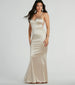 Sleek and slinky, the Kaley satin formal dress sparkles with glamour at prom and black-tie parties! This alluring formal gown is designed with a plunging V-neckline, padded bra cups that flatter your bust and support, and gorgeous rhinestone-embellished spaghetti straps that crisscross over the strappy back, fastening securely with dual hook-eye closures. The alluring mermaid silhouette and floor-length hem on luxurious satin fabric will have you feeling like a true goddess all evening! Complete the look with a tennis bracelet, clutch, and block heels.