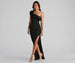 Enchant in a formal dress that radiates sophistication with each step. Karrigan features a ruffled one-shoulder neckline, a slim fit bodice, and a curve-hugging A-line silhouette that is accented with a high side slit. The dress is composed of a lined crepe fabric that offers a form-hugging fit with a moderate stretch. Complete look with rhinestone heels and a rhinestone clutch.