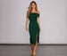 Keep your look simply elegant and polished in our essential Kate dress! She features an off-the-shoulder neckline, a fold-over accent, and princess seams leading to her figure-flattering midi-length silhouette with a sultry side slit. The dress is composed of a crepe fabric that offers a moderate stretch. Complete your look with a sleek clutch and rhinestone earrings.