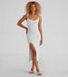 Keep your look light and effortless in this sweater midi dress perfect for any day or night summer event! It features a sleeveless, v-neck, spaghetti straps, a bodycon silhouette, and a sultry front slit. Complete the look in strappy sandals.