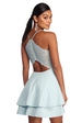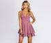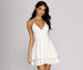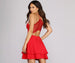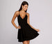 Live your wildest dreams in this dress! Bring the wow factor to your date-night outfit in this flirty skater dress. The dress features a flattering v-neckline, spaghetti straps that offer support, sheer lace back detail with a lower back keyhole to show off a hint of skin and a flowy skater silhouette with double-tiered hem. The dress is composed of a form-hugging ponte knit fabric that offers a moderate stretch. Complete your impressive look with rhinestone duster earrings and sleek stiletto heels.