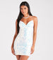 The sexy Laura sequin mini party dress will elevate your dressy occasion! With a luxurious sequin scroll pattern on chic mesh fabric, this dress will have you turning heads. A flattering sleeveless plunge V-neckline with sleek bungee spaghetti straps, a built-in padded bust, a strappy open back, and a mini bodycon silhouette provide a beautiful style you're sure to love. Complete your showstopping look in this mini-length dress with lace-up heels and earrings.