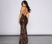 Shine on in our Lei formal sequin dress, her scroll print pattern radiates elegance from every angle! Pair her with sleek stilettos and a dazzling clutch for an enchanting look!