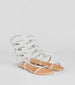 Level up your glamorous side in these statement-flat sandals perfect for semi-formal and dressy events! They feature an almond toe, rhinestone embellished toe and spiral ankle straps, and a faux leather footbed with rhinestone trim. Complete the look with a chic ring set.