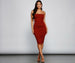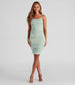 Level up your basic look with this trendy ruched knit midi dress. It features a sleeveless bodice, bungee spaghetti straps, a square neckline, all-over ruched detailing, and a mid-length, curve-hugging silhouette. The soft brushed knit fabric includes a lining and offers plenty of stretch for comfortable wear. Complete your outfit with a layered necklace and sleek heels.