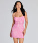 The Leyla sequin mini dress is crafted with gorgeous iridescent sequin embroidery on the partially lined mesh fabric. It features spaghetti straps leading to an open back with a lace-up strappy design for a customized fit, a sheer waist insert with flexible boning to provide structure, and a mini-length bodycon silhouette. Style with metallic heels for prom or a formal party!