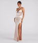 Lustrous satin breathes elegance onto the Lilah formal long dress to capture the attention at galas or black-tie parties! She features a sleeveless plunge sweetheart neckline with a wire insert, and sleek shoulder straps that lace up along the open back with a lower ruched seam to accentuate your curves. Her flattering mermaid silhouette is designed with a skin-flaunting high-side slit and a floor-length hem. The formal dress is composed of silky satin fabric with lining and moderate stretch. Complete your dressy look with a statement rhinestone necklace.