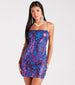 Hey babe, live it up and light up the dance floor in this stunning sequin mini dress! It features a sleeveless square neckline, bungee spaghetti straps, and a short, form-hugging silhouette. The sheer mesh fabric includes a full knit lining and has a chic all-over sequin scroll embroidered design. Complete the look with platform heels.