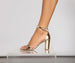 Live it up in luxe with a chrome block heel that brings the glam to your outfit! The heels feature an adjustable ankle strap, an open almond toe with a strap over the toe, and a block heel. They are composed of faux leather material with a chrome finish. Complete look with an LBD.
