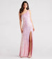 Bring the sparkle to your prom with a prom dress that radiates stunning allure! The Lyla features a one-shoulder neckline, a supportive tank strap with bungee straps at the back, and a sexy high side slit showing off some leg on the elongating A-line silhouette. She's composed of a lined sequin fabric that offers a form-hugging fit with slight stretch. Complete the look with rhinestone heels and a glitter clutch.