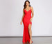 Our gorgeous Maci mermaid dress is a mesmerizing vision! She features a sleeveless V neckline, dual spaghetti straps that lead to a cross-back and lace-up back design, and a floor-length mermaid silhouette with a sultry thigh-high front slit. Doll up your look with sparkly earrings and an embellished clutch!
