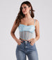 Make major glam moves in this sweet and sultry bustier! It features a sleeveless sweetheart neckline with a satin overlay with a cowl neck design, a wired and padded bust, adjustable spaghetti straps for a customized fit, and a sheer mesh bodice with a corset design and mini rhinestone detailing. Style this bustier with faux leather pants and mules.