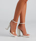 Step out like the trendsetter you are with heels that elevate your style game! The heels feature a closed-back, an adjustable ankle strap, an open almond toe with a clear PVC strap over the toe, a platform, and a block heel. The heels are composed of a faux leather material. Complete look with a bustier and mini skirt.