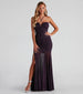 Marlene brings the glam factor in light-catching glitter to steal the show! She features a sleeveless, halter neck with tie closure, a built-in padded bust, and all-over ruching designed to hug and flatter your curves. Her mermaid form-fitting silhouette gently flares out in a floor-length hem with a sultry front slit perfect for showcasing some leg. The formal dress is composed of a glitter-knit lined fabric with a moderate stretch. Complete your dress look with a rhinestone tiara to have a princess moment.