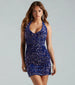 Strut confidently in the daring Maya velvet sequin mini dress at bachelorettes or Vegas weekends! She features a halter V-neckline, an open-back to flaunt some skin, a flattering bodycon silhouette, made of shimmery velvet sequins. Conquer the night with this mini-length dress! Style with fringe earrings and heels.