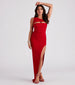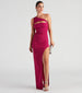 The Mayven formal dress brings sultry, sophistication to every event! She features a one-shoulder strap design with an alluring neck cutout detail on the fitted bodice. The empire waist flows into her floor-length silhouette and flaunts some skin with a sexy high-cut slit. Composed of a crepe knit fabric with a moderate stretch. Create the perfect look in this long dress with lace-up heels and a sparkly necklace.