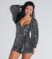 This gorgeous glitzy sequin romper is perfect for meeting your special someone at midnight on the dance floor! It features a sweetheart neckline with a center plunging design, long bishop sleeves, a tie-front belt to snatch your waist, and a form-hugging fit. The woven fabric features all-over sequin embroidery for a total glam girl shine. Style this romper with metallic heels for your next night out.
