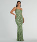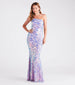 Get a luxe look for your next fancy night out in the stunning Meredith sequin formal dress. She features a sleeveless bodice, an asymmetrical one-shoulder neckline with dual adjustable spaghetti straps, and a back zipper and hook and eye closure. She has a floor-length, form-hugging mermaid silhouette to highlight your curves. The dress is composed of a sheer mesh fabric with an all-over gorgeous sequin embroidered floral design and includes a stretchy knit lining. Complete your outfit with rhinestone stud earrings and a dainty sparkly bracelet.