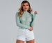 Have a moment in mesh! This on-trend crop top features long sleeves, a mock neckline, exposed seam detail along a fitted hem. Complete the look in a lace bralette and leather leggings.