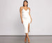 Keep it simply stunning in our Mila formal dress! Her elegant design captivates from the moment you enter the room of your special occasion. Mila features a sleeveless V-neckline, vertical seams at the bust, and a curve-hugging midi silhouette with a high side slit. She is composed of a stretch knit fabric with a subtle sheen finish. Complete your look with clear heels.