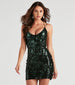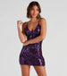 Dazzle them all this Homecoming season in the stunning Monique mini dress! She features a sleeveless V-neckline, dual bungee spaghetti straps that lead to an alluring open back with a strappy design, a short, curve-hugging, bodycon silhouette, and all-over sequin embroidery in a chic scroll pattern. Style with stilettos and a sleek clutch.
