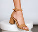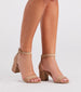 These basic short block heels are a definite must-have you need in your closet. They feature an open almond-shaped toe with a strap, an adjustable ankle strap, and a short block heel for comfortable wear. Style these heels with a midi dress and a boyfriend blazer for the perf workwear look.