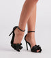 Show up fashionably late to the party in these satin stiletto heels! Featuring a pointed toe, a ruffled toe strap, a closed ankle, and an adjustable ankle strap with buckle closure. Complete the look with a statement ring set and clutch.