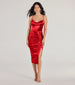 Make a stunning impression in this satin midi dress. Elevate your night out look in this luxe stretch satin midi cocktail dress with a flattering cowl neckline for a post-worthy look.