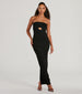 Bring a stunning look in this strapless maxi dress for your look-back-it moment! The strapless neckline and cutout bust add a touch of allure, while the strappy back and form-hugging fit emphasize your figure. With a center-back slit, you'll be able to move in style. Complete the look with earrings and a clutch!