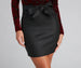 Take on a new bold look in this coated mini! This skirt is all chic with eye-catching detail featuring a high-rise, tie-waist on a short-length hem on a coated faux leather fabric. Complete the daring look in a bodysuit and booties.
