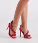 Level up your night-out look with these glamorous and glitzy satin stiletto heels! They feature an open square toe, a rhinestone-adorned braided toe strap, a matching asymmetric rhinestone braided strap that connects to the heel strap, and a sleek stiletto heel. Style with a bodycon mini dress for your next girl's night!