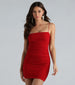 Shimmer all night in this figure-flaunting bodycon mini dress featuring a sleeveless square neckline, bungee spaghetti straps, side ruched seams, and a curve-hugging silhouette with all-over heat stone embellishments on the stretchy, lined mesh fabric. Complete your club look in this mini-length dress with platform heels.