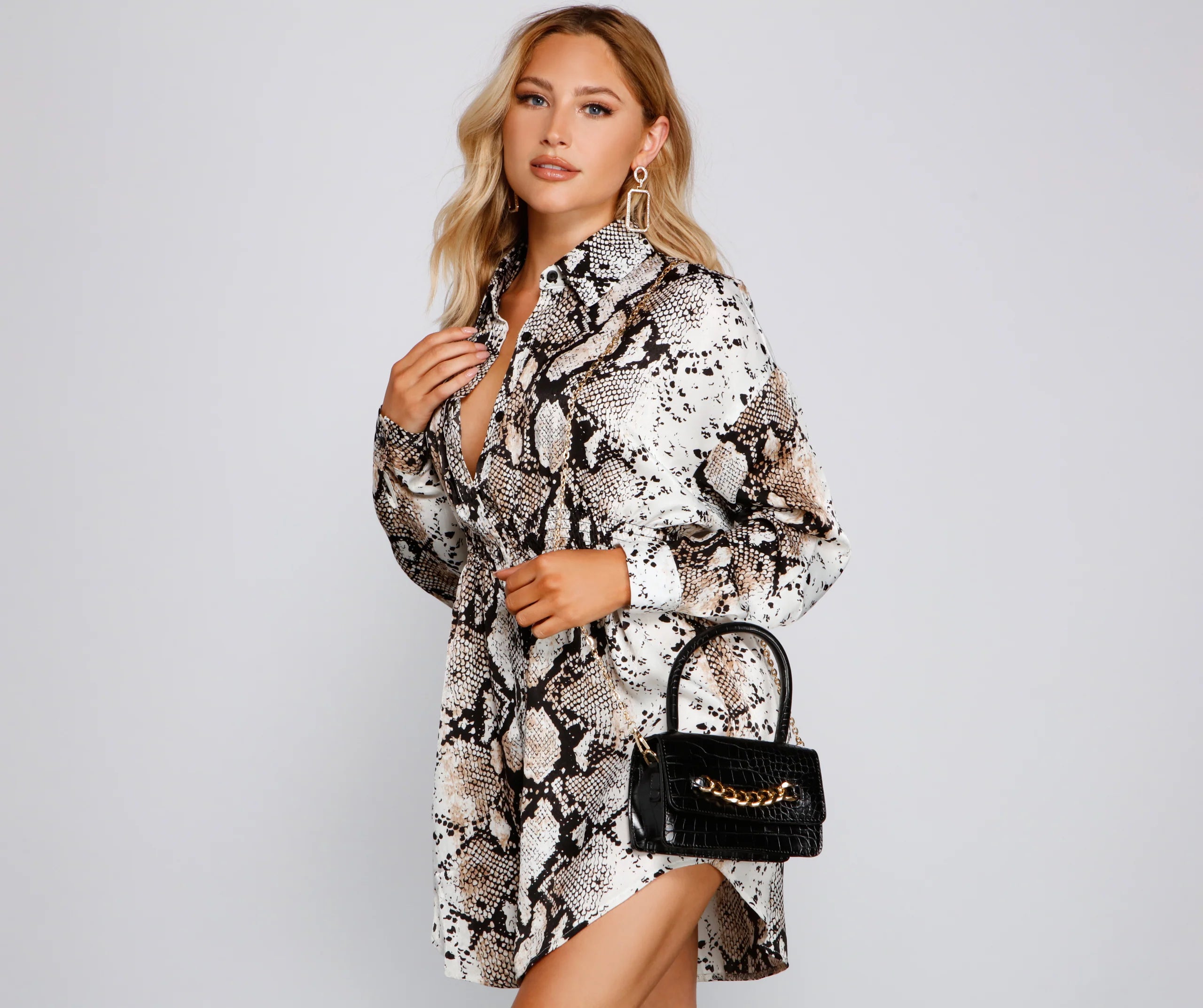 Grab your girls and grab this crossbody for a night on the town. This faux leather crossbody is designed with faux croc embossing, a chain-link detail, and a top handle for easy carrying. Take on the town and wear it with a must-have crop top.
