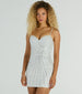 Elevate your night in this sparkly rhinestone mini dress! Featuring a sweetheart neckline and adjustable spaghetti straps, a padded bust, this mini-length dress hugs your body in a flattering bodycon silhouette. The rhinestone embellished pattern adds a touch of sparkle, making it perfect for bachelorettes, birthdays, and clubs! Complete the look in rhinestone strappy heels.