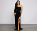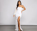 Make an elegant impression in the captivating Odette formal dress. She features a one-shoulder neckline, a long chiffon sleeve, and a curve-hugging mermaid silhouette accented with a high side slit. The dress is composed of a lined crepe fabric that offers a moderate stretch. Complete look with rhinestone earrings and glitter heels.
