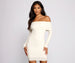 Elevate your everyday style with this adorable brushed knit mini dress! It features an off the shoulder fold-over neckline with long fitted sleeves and a short, curve-hugging silhouette. Pair this dress with heeled booties for the perf winter date night with bae.