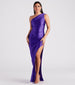 Your curves deserve the spotlight in the Olga formal dress perfect for bridesmaids or fancy dinner parties! She features a sleeveless one-shoulder neckline with an asymmetrical strap, bust lining, and side ruched seams to accentuate your figure along her bodycon, slim silhouette, and a skin-flaunting high side slit and long hem. The formal dress is composed of a slinky knit fabric with a sheen effect and moderate stretch. Style with a stunning jewelry set and heels to complete your dressy look!