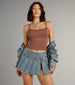 This spaghetti strap crop top is the kind of basic you’ll wear on repeat. Soft, fitted, and super versatile, it’s ready for gym days, coffee runs, or layering under your fave jacket.