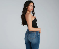 Show off a little shoulder action with a bodysuit that slays. The bodysuit features a one-shoulder neckline, an asymmetrical cutout at the bust, a fitted long sleeve, a midriff cutout, and a thong bottom with dual snap button closure. Complete look with a wrap skirt and heels.