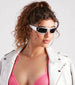 Your style will look out of this world in these retro-fab silver sunglasses featuring a geometric style plastic frame, tinted lenses, and a sleek design. Complete the look in lug booties.