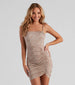 Enchant them all in your love for all things paisley! This square neck mini dress features a sleeveless bodice, spaghetti straps, a bodycon silhouette, and a front ruched seam on stretchy knit fabric. Complete the look in espadrille wedges.
