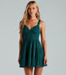 This glitter skater dress will inspire you to seek out every party to show it off! Featuring a sleeveless V-neckline, sheer tank straps, a padded bust, and a flattering tiered skater silhouette and ruffled short-length hem. Complete the look in chic block heels.