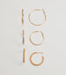 This must-have hoop earrings set has the perfect balance of sleek, glam, and trendy! It features three pairs of hoop earrings with a classic design, a rhinestone-embellished design, and a chain-link design.