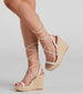 Today is a perfect day to stun in wedges that you can wear at brunch or on vacation! The wedges feature an open almond toe, a strap over the toe, lace-up straps, and an espadrille wedge heel. Complete look with matching top and skirt.