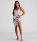This curve-hugging midi dress is perfect for your vacation in paradise, or to just look like you're on one! It features a sleeveless V-neckline, spaghetti straps, a midi-length asymmetrical hem to showcase some leg, and an all-over tropical floral print to match the vibe of a vacay. Style this dress with strappy mules.