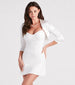 This knit satin bolero is a chic layer to add coverage over your formal outfit or dressy look! It features three-quarter-length sleeves, an open-front design, and an ultra-crop hem. Style with chic heels and a clutch.
