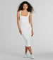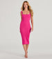 This adorable midi dress is a perfect pick for leveling up your casual everyday looks! Designed with a stretchy ribbed knit fabric for comfortable wear, this mid-length dress features a classic sleeveless square neckline with thin tank shoulder straps. The curved underbust seam will accentuate your figure, while the bodycon silhouette will flaunt your gorgeous curves. Style this midi dress with a denim jacket and mules.