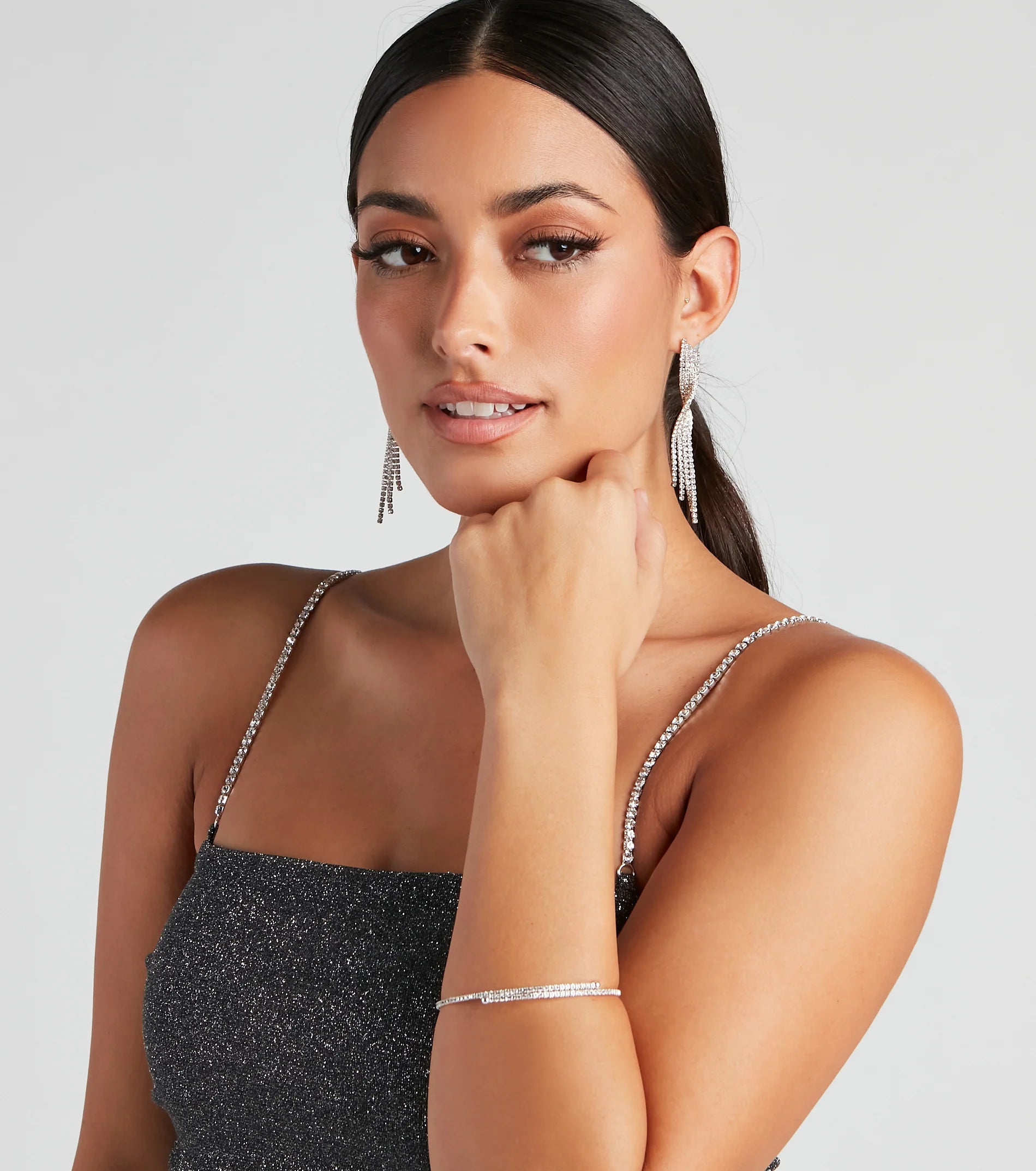 Showcase a simple sparkle with this dainty arm cuff to complete your picture-perfect look. It features a flexible memory wire design with mini rhinestone embellishments. Style with a glam statement ring.